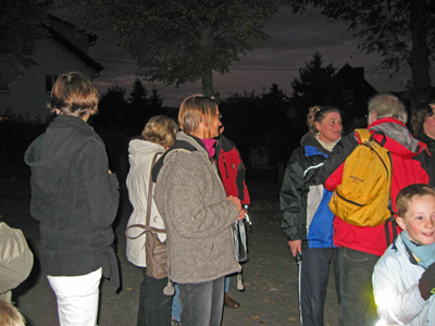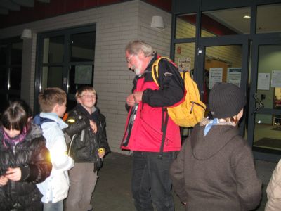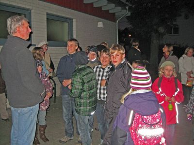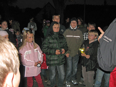 Die TGV Verantwortlichen Gerhard Twardawa und Jürgen Behrens waren in ihrem Element, als es am 28.10.2011 um ca. 18.47 Uhr von der Sport- und Kulturhalle los ging. Die Anzahl der Kleinen und Großen Nachtwanderer ist in diesem Jahr sprunghaft angestiegen, der Erlebnisreichtum dieser Veranstaltung hatte sich wohl herum gesprochen. 40 Kinder und fast ebenso viele Erwachsene strömten mit Taschenlampen und Stiften ausgestattet in die nächtliche Wingsbacher Gemarkung.