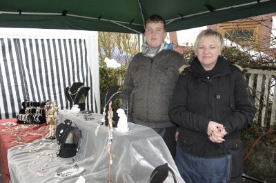 Diese Beiden verkaufen selbstgefertigten Schmuck. Die Mama tut das im Auftrag der Tochter, sie hat leider keine Zeit. Nett, wenn man so eine Mama hat.