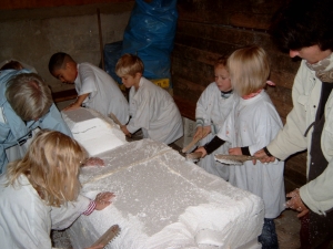 Hier gibt S. Müller noch mal kurze Anweisungen, wie alles gemacht wird. Die kleinen Bäcker sind ganz Ohr.