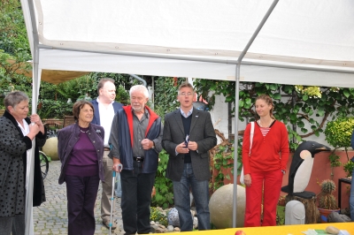 Die Ausstellung im Hof wird von Herrn Hofnagel eröffnet, auch Gerhard Wittmeyer vom Vorstand der Kunst und Kulturstiftung ist dabei.